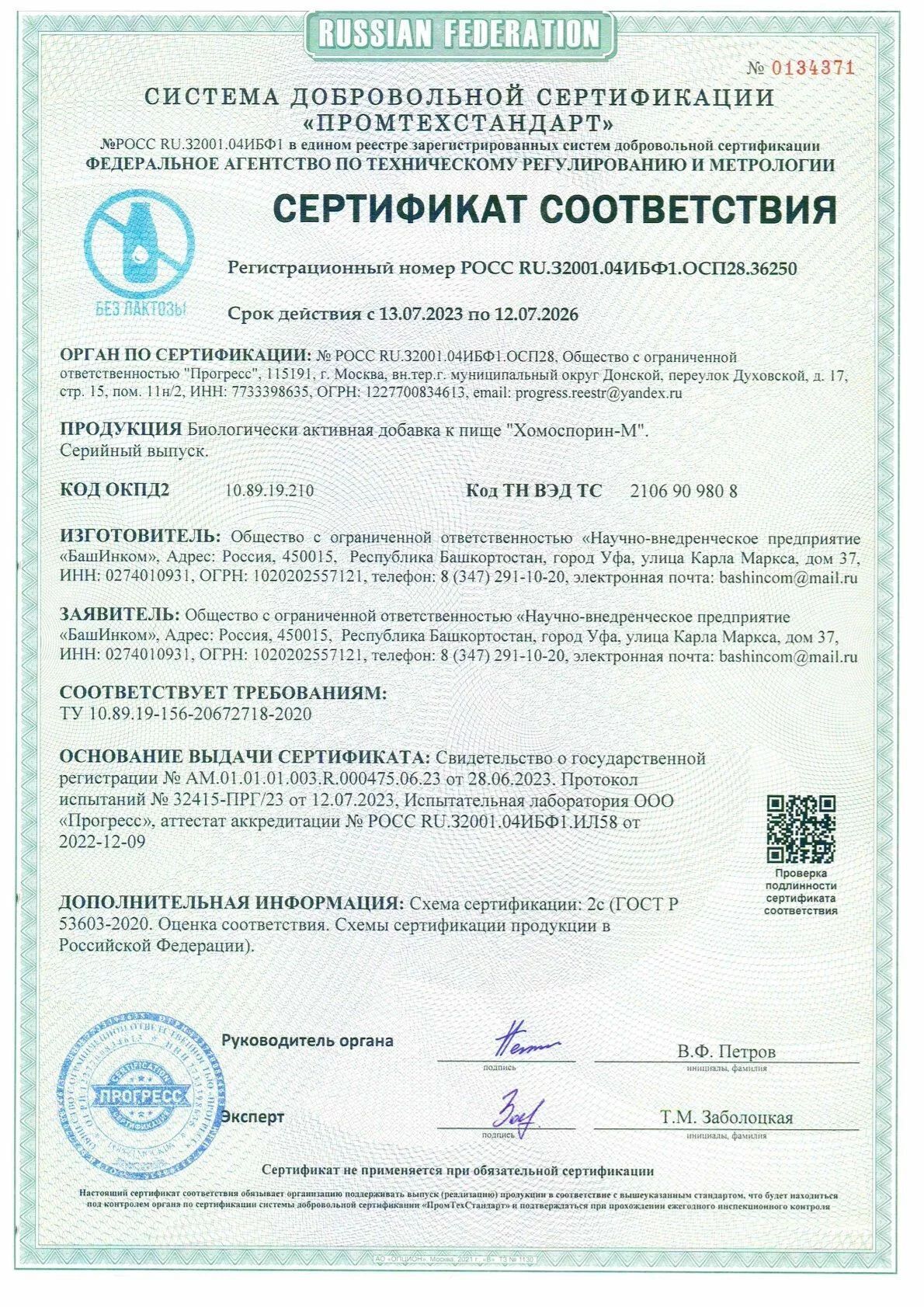 Хомоспорин Форте или Биологически активная добавка к пище«Хомоспорин-М».